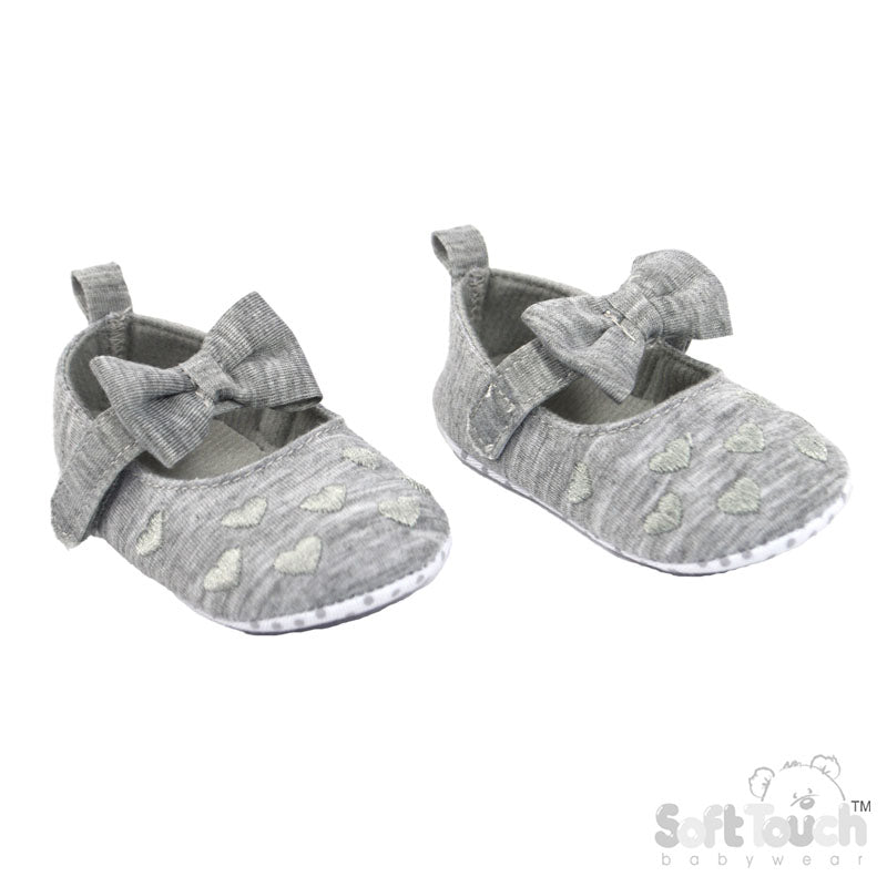 Grey Cotton Slip On Shoes With Heart Embroidery And Matching Bow (6-15 Months) (PK6) B2284-GB2284-G